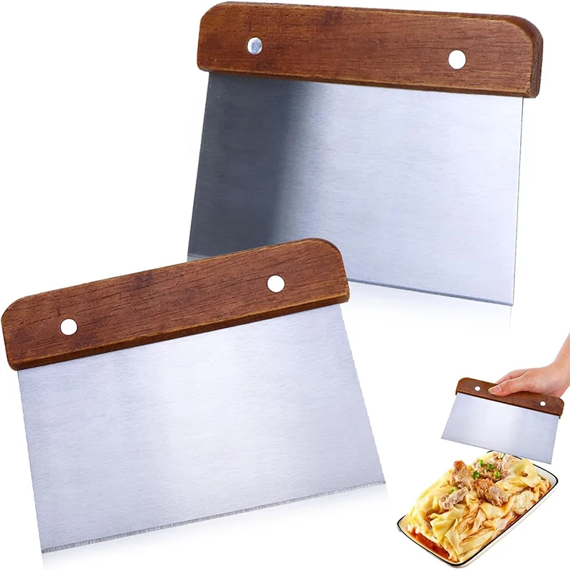 2Pcs Stainless Steel Dough Cutter with Wooden Handle Multipurpose Baking Scraper Cutter Bread Pastry Pizza Cake Kitchen Scraper