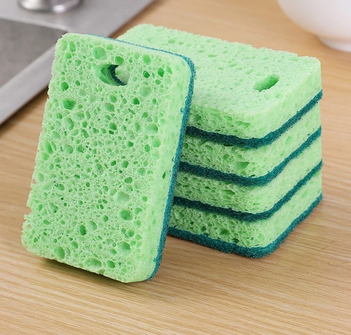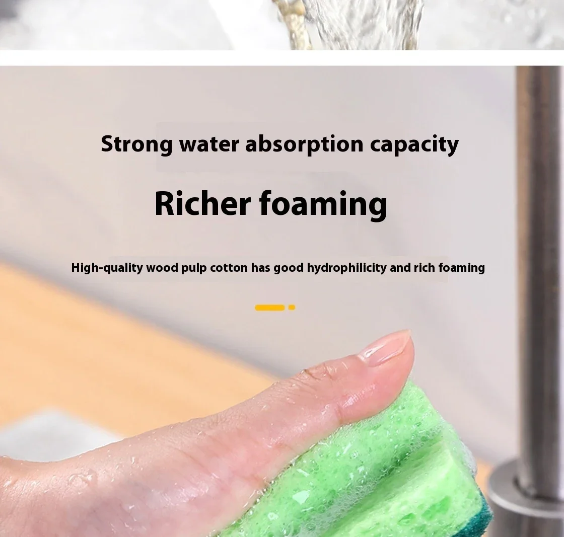 Natural Wood Pulp Cotton Sponge Wipe Re-Washable Sponge Household Cleaning Pad Kitchen Cleaning Gadgets Descaling Cleaning Rub